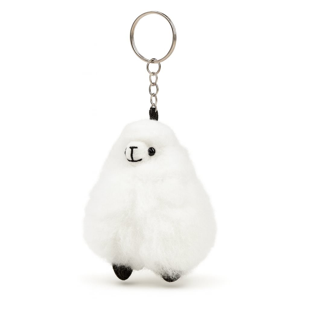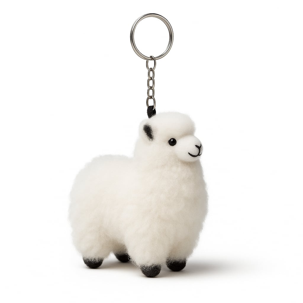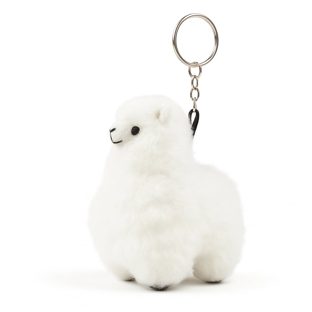大人気!ベビーアルパカ純毛の毛で作られたアルパカキーホルダーです。愛らしい表情とふわふわの質感が魅力的。