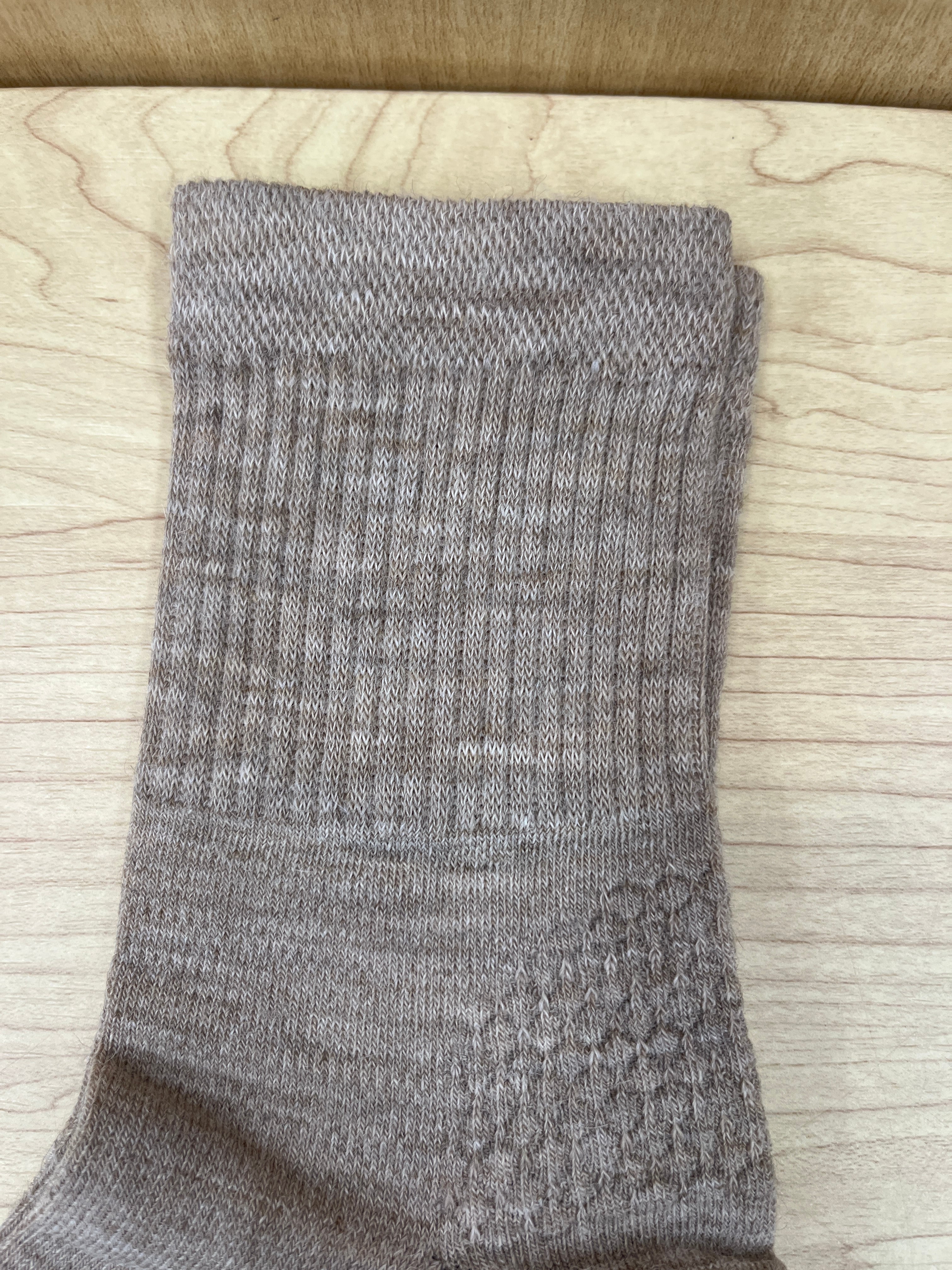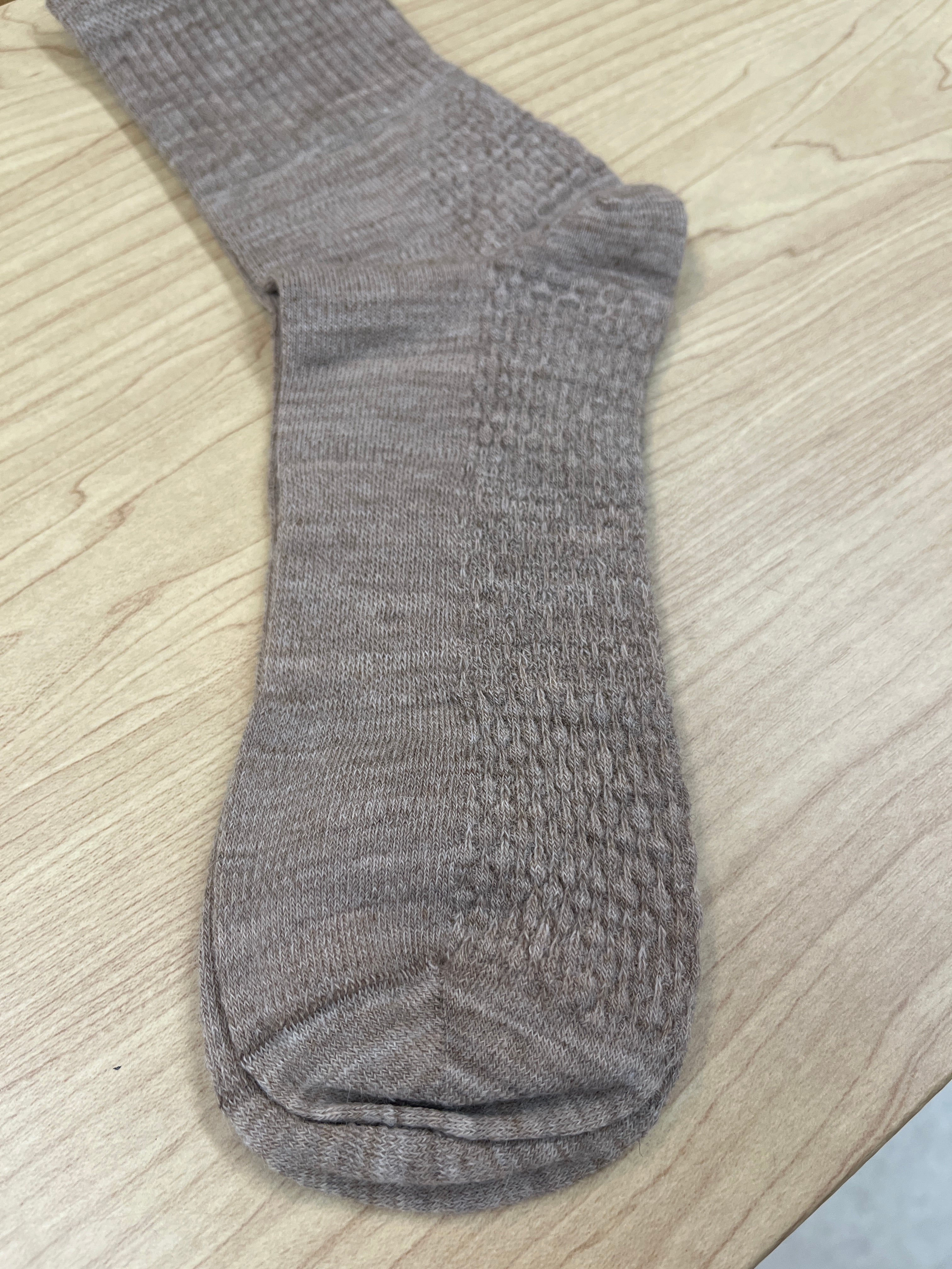 暖かくかつ通気性も良いベビーアルパカを62%使用、耐久性・伸縮性を良くするためにナイロン35%とポリウレタン3%を混紡しました。肌触りが滑らかで履き心地が良くしっかりした作りの靴下です。アルパカの薄手でも暖かいという素材の特性が生かされています。