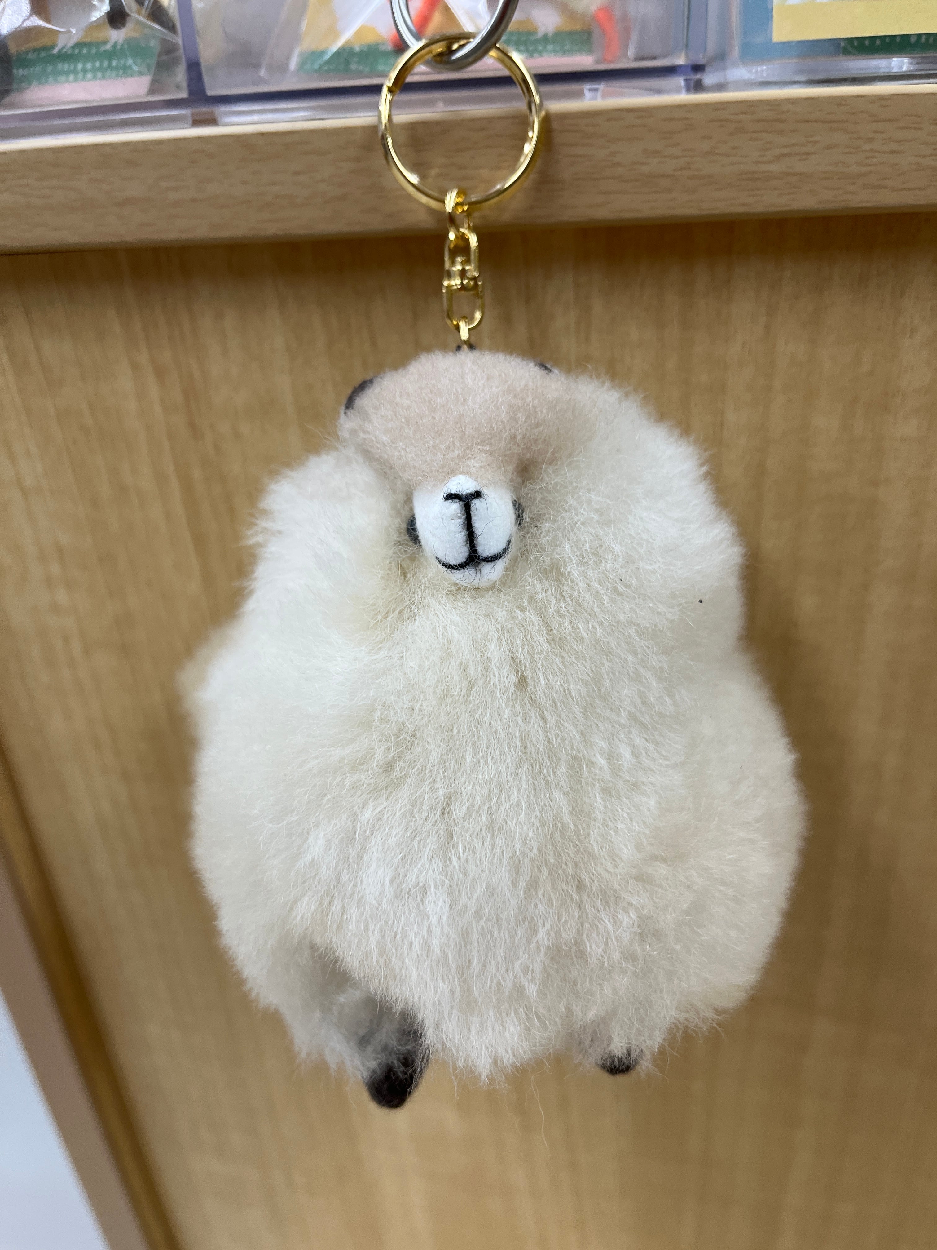 大人気!ベビーアルパカ純毛の毛で作られたアルパカキーホルダーです。愛らしい表情とふわふわの質感が魅力的。