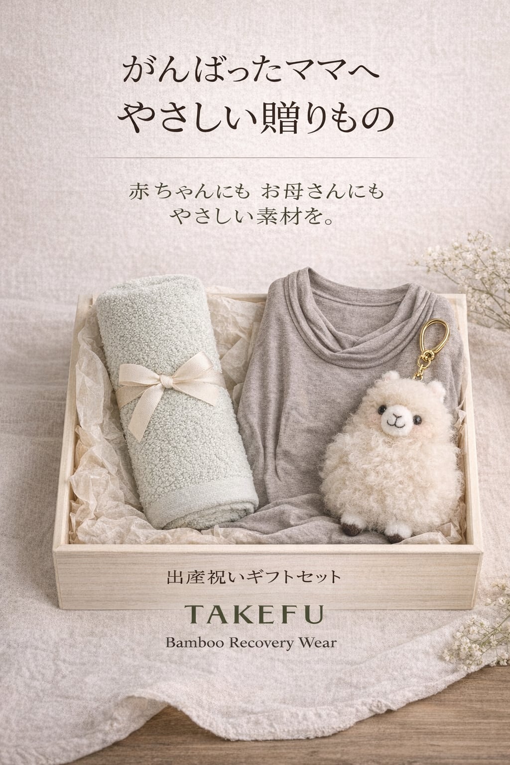 レーヨン(TAKEFU)70%(原料に竹を使用)、綿30%