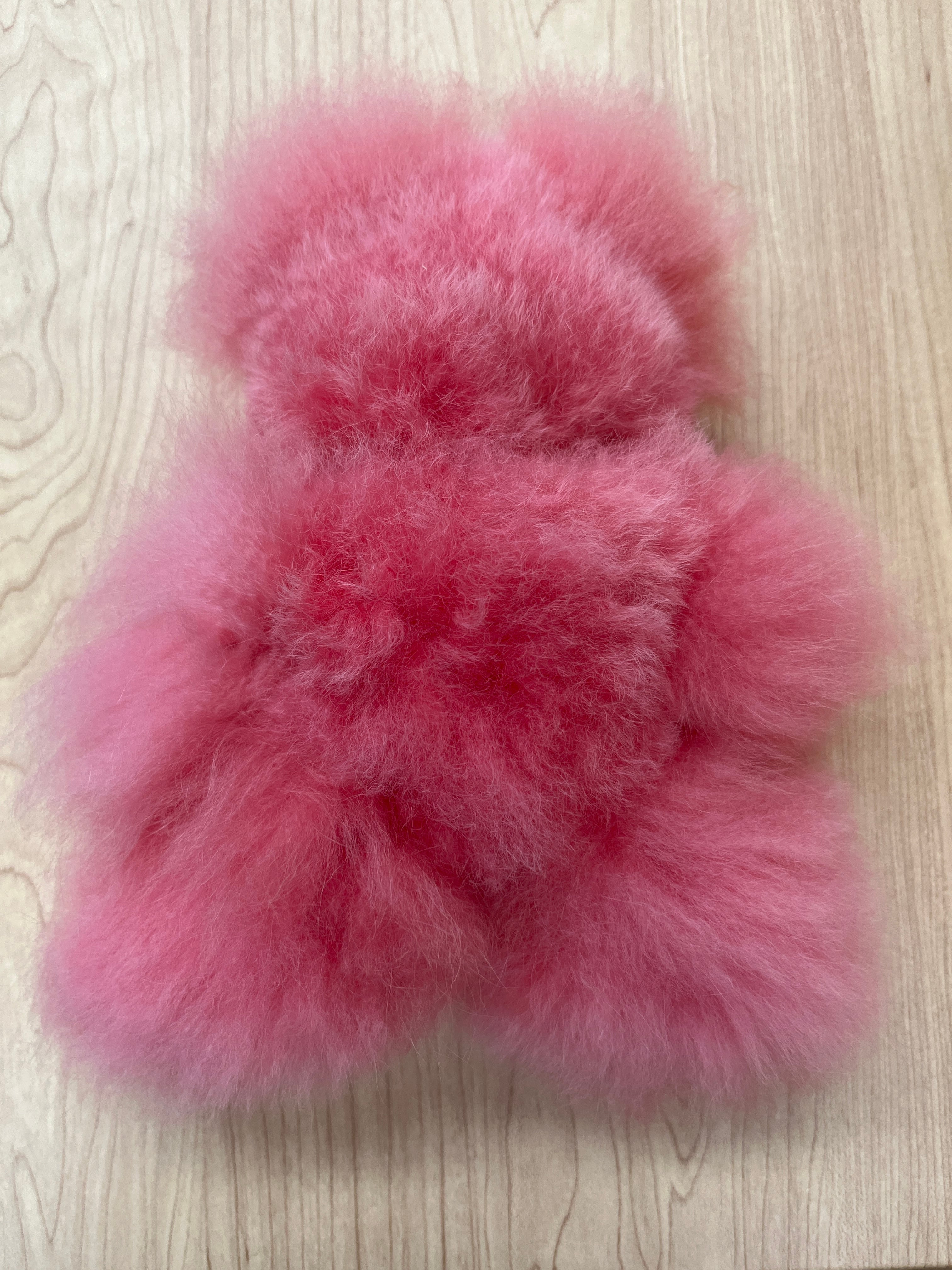 ベビーアルパカ純毛人形 天然毛の柔らかさは、触っただけで癒されます。綺麗なピンク色に染めてありますので直射日光の当たる所は避けてください。