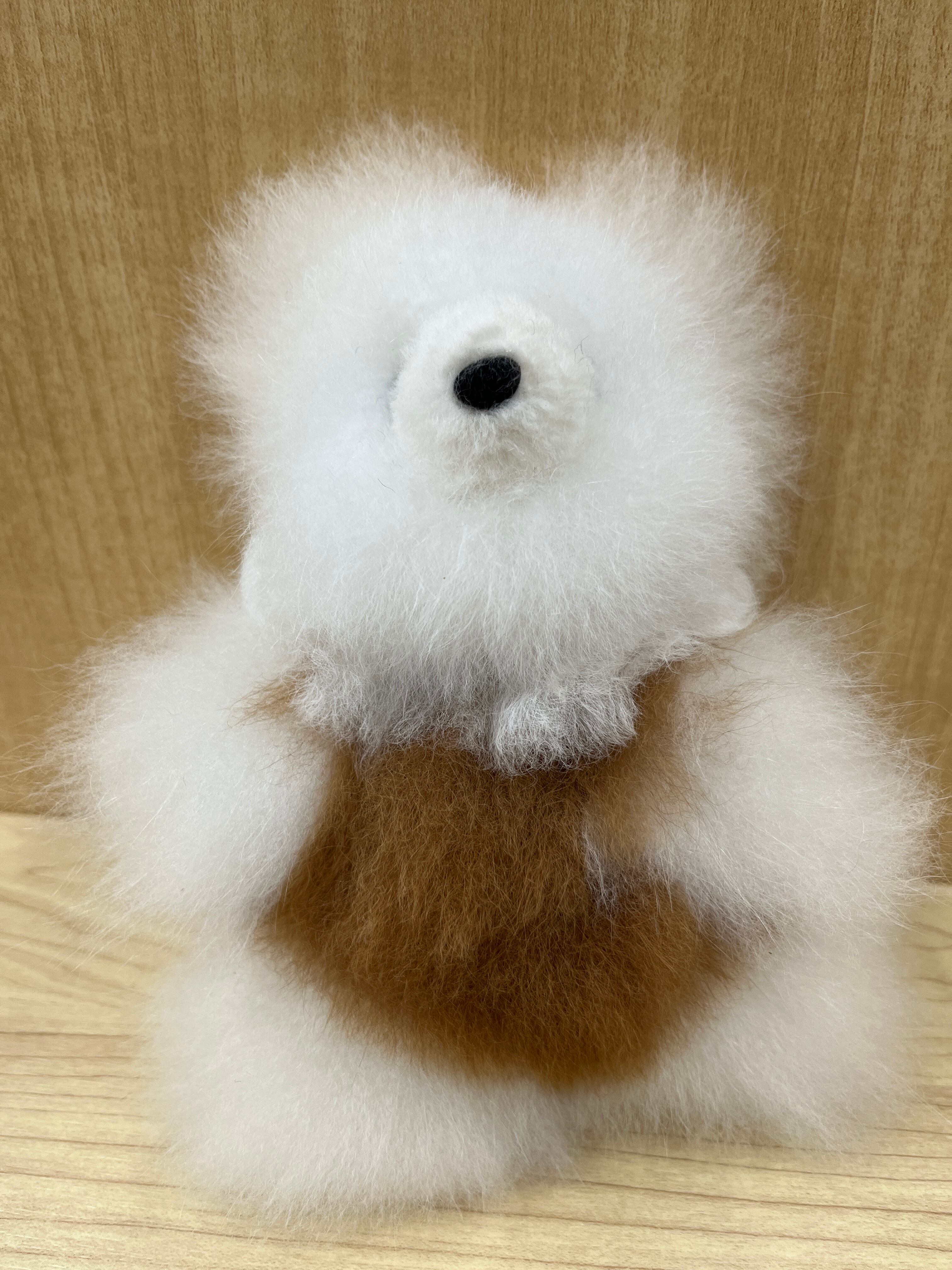 ベビーアルパカ純毛人形 白い襟が可愛いらしいテディベアです。天然毛の柔らかさは、触っただけで癒されます。